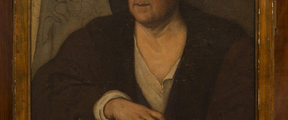 Tra le opere concesse in comodato alla Sapienza dalle Gallerie Nazionali Barberini Corsini il 7 agosto 1954 (BILLI 2023, p. 91) figura un enigmatico ritratto maschile. Sebbene nella scheda di catalogo (OA 12 00252395) sia indicato come un dipinto di ambito veneziano databile alla prima metà del XVIII secolo rappresentante un “egittologo”, esso raffigura in realtà l’umanista Giovanni Pietro Bolzani Dalle Fosse noto come Pierio Valeriano (1477-1558) (MAGGIONI 1982), autore del trattato Hieroglyphica dato alle stampe a Basilea nel 1556 (DALLE FOSSE 1556; GIEHLOW, RAYBOULD 2015, pp. 208-235; PASTORE STOCCHI 2001; PELLEGRINI 2002; ROZZO 2004). L’opera non si occupa di geroglifici nilotici, come potrebbe suggerire il titolo fuorviante, ma raccoglie una serie di emblemi, ovvero figure simboliche accompagnate da motti (VAGNONI, CASSINI 2015). Sulla scorta degli Hieroglyphica di Orapollo ristampati in greco nel 1505 e in latino nel 1517, durante il periodo rinascimentale si sviluppò un crescente interesse per la scrittura egizia interpretata in chiave ermetica e simbolica, che diede vita ad una serie di repertori di immagini di cui il più celebre resta l’Hypnerotomachia Poliphili (VAGNONI 2004). L’opera di Valeriano, inserendosi nel solco di questa tradizione e fondendo quella classica con i cicli dei bestiari medievali, godette di una fama ininterrotta e fu utilizzata come fonte d’ispirazione da diverse generazioni di intellettuali e di artisti (BARI 2021; CASSINI 2011; CIERI VIA 1999; FAGIOLO 2004). Si può ricordare a titolo esemplificativo che l’idea per l’immagine del delfino avvinto all’ancora scelta dal tipografo Aldo Manuzio come logo per le sue edizioni, fu tratta proprio dalla raccolta di geroglifici del Bolzani (DALLE FOSSE 1602, p. 696).
